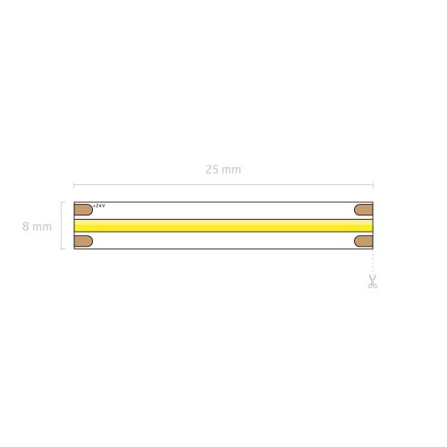 Slim at 8mm wide (8.5mm coated) and 2mm deep (3mm coated), it fits neatly into aluminium profiles or tight channels. Cut points every 25mm give flexibility during installation, while 3M 300LSE adhesive ensures a secure hold.
