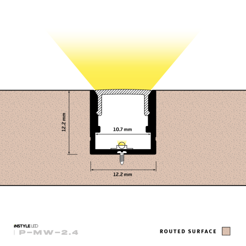 The INSTYLE LED Acoustic/Slat Wall LED profile is a professional aluminium housing designed specifically for integrating LED strip lighting into acoustic or slatted wall panels. With a discreet size of 12.2mm wide and 12.2mm high, it accommodates LED tape up to 10.7mm wide, offering a seamless and stylish lighting solution.